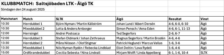 Då var det åter dags för den traditionella klubbmatchen mot Älgö TK. Årets match spelas hemma på våra fina grusbanor, söndag 24/8 med start 10.30. Kom och heja!